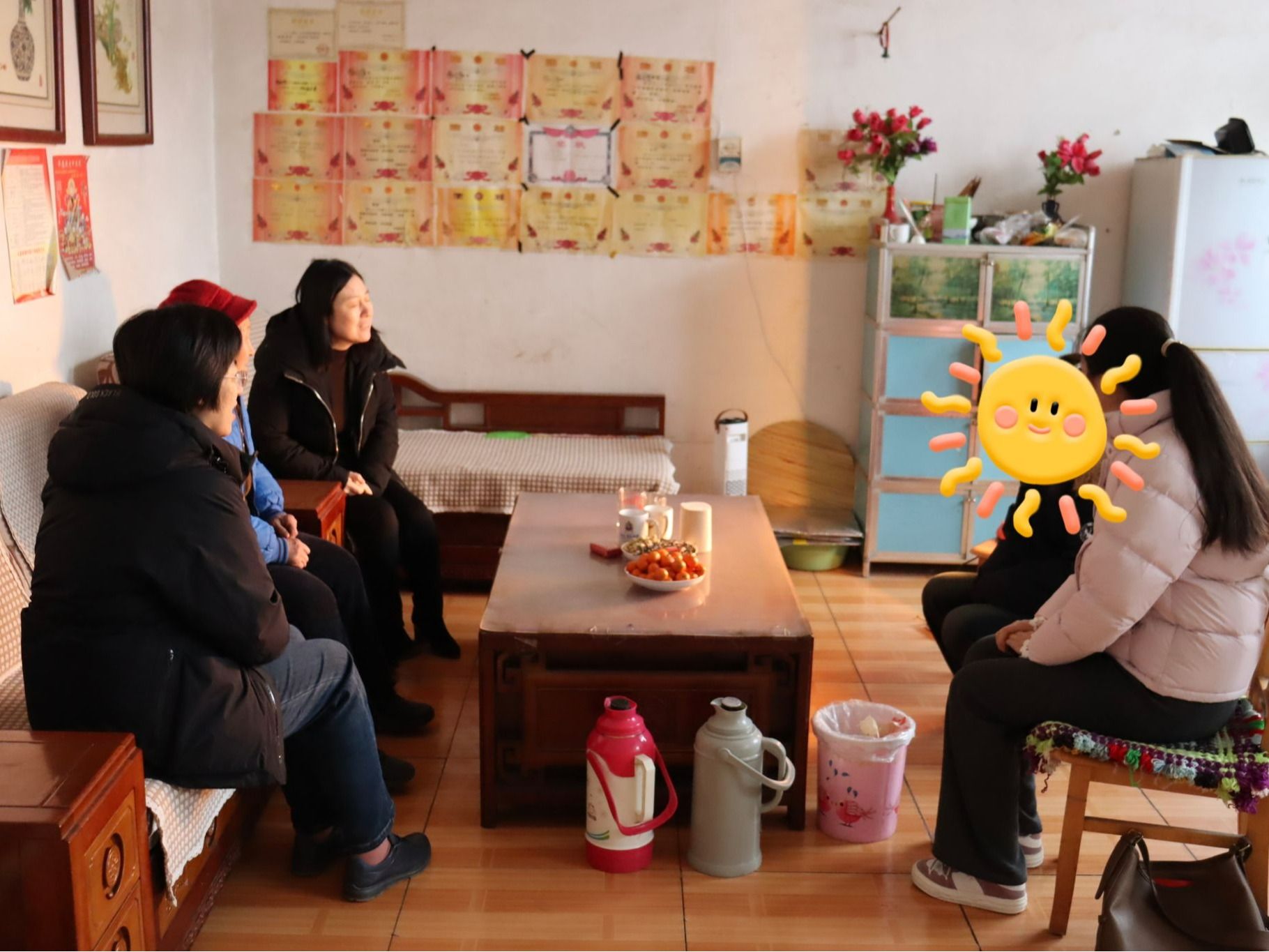 在杨同学家中,学院老师与学生及家人亲切交流,细致了解其家庭实际困难与需求。该生家庭为脱贫享受政策户,成长环境较为特殊,主要依靠亲属照料和政府补助生活。老师们细致询问其学业与生活状况,肯定其在校获得的竞赛成绩,并送上学院的慰问与鼓励。受访家长对学校的关怀表示感谢,学生们也倍感温暖与鼓舞。