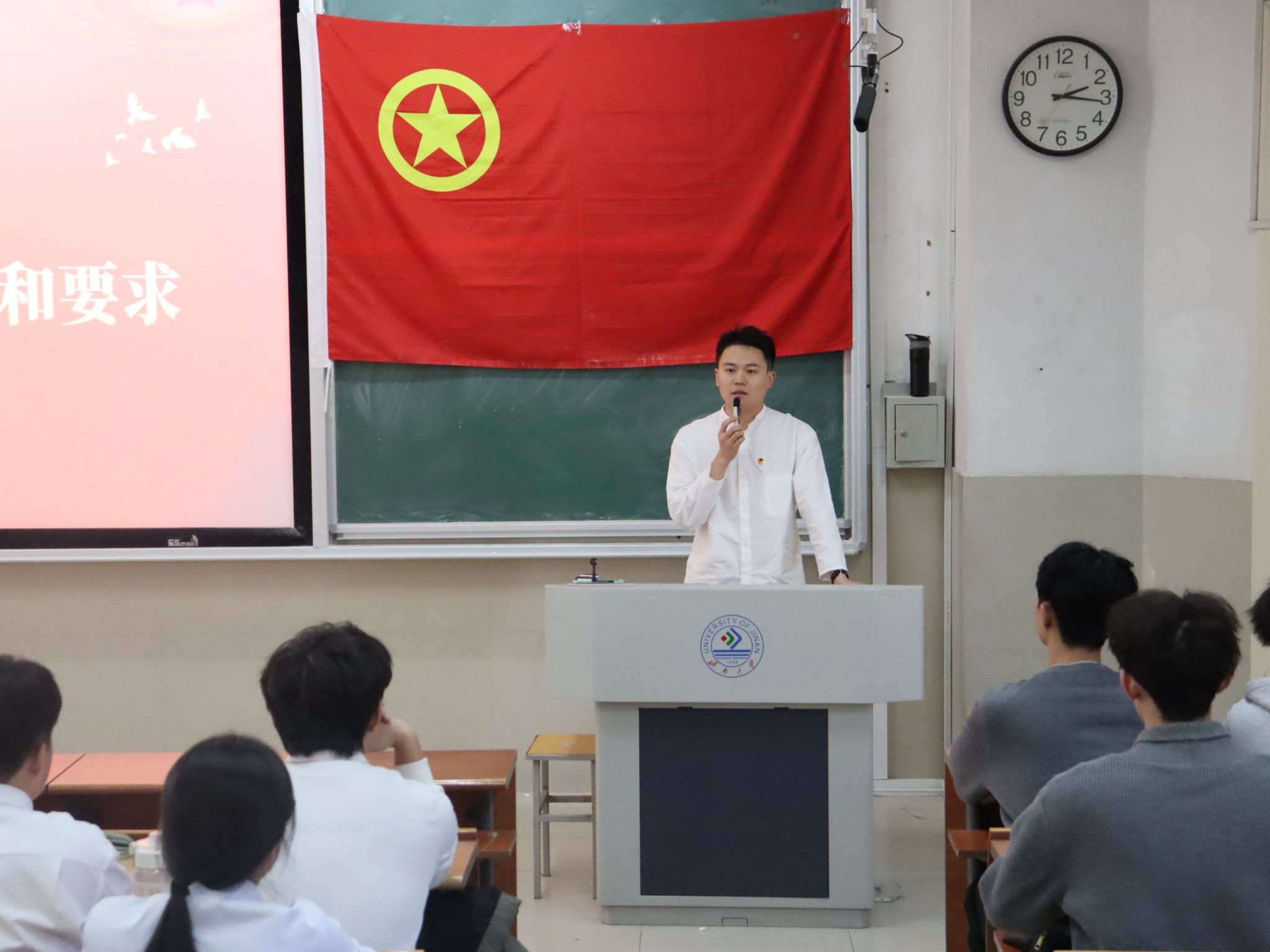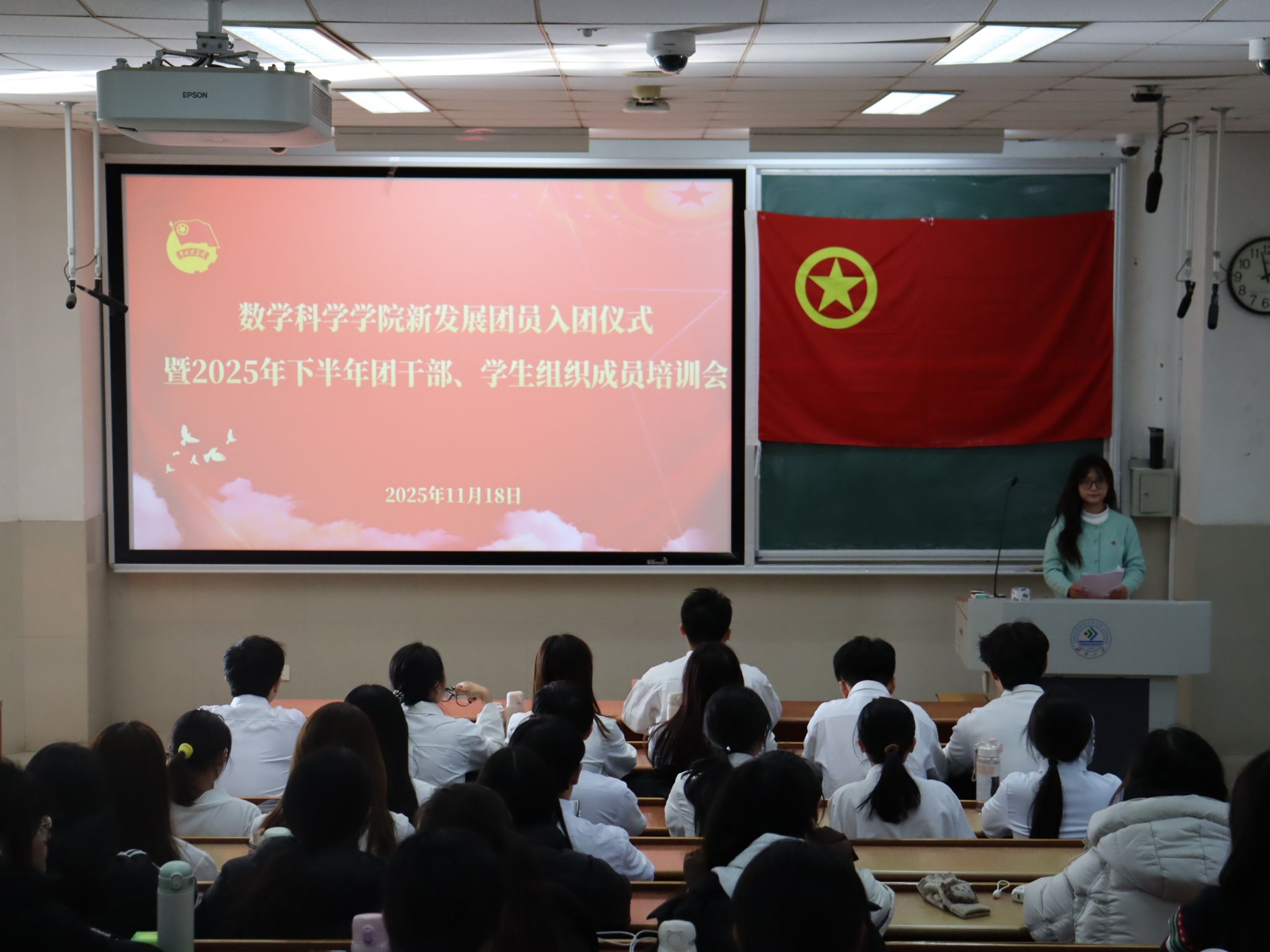 为深入学习贯彻党的二十届四中全会精神,引导青年学生进一步统一思想、凝聚共识、筑牢根基,数学科学学院团委于11月18日在11J1302教室举行2025年下半年新发展团员入团仪式暨团支部书记专题培训会。学院团委书记姬磊、2025年下半年新发展团员、全体团支部书记及学生组织干部参加本次活动。