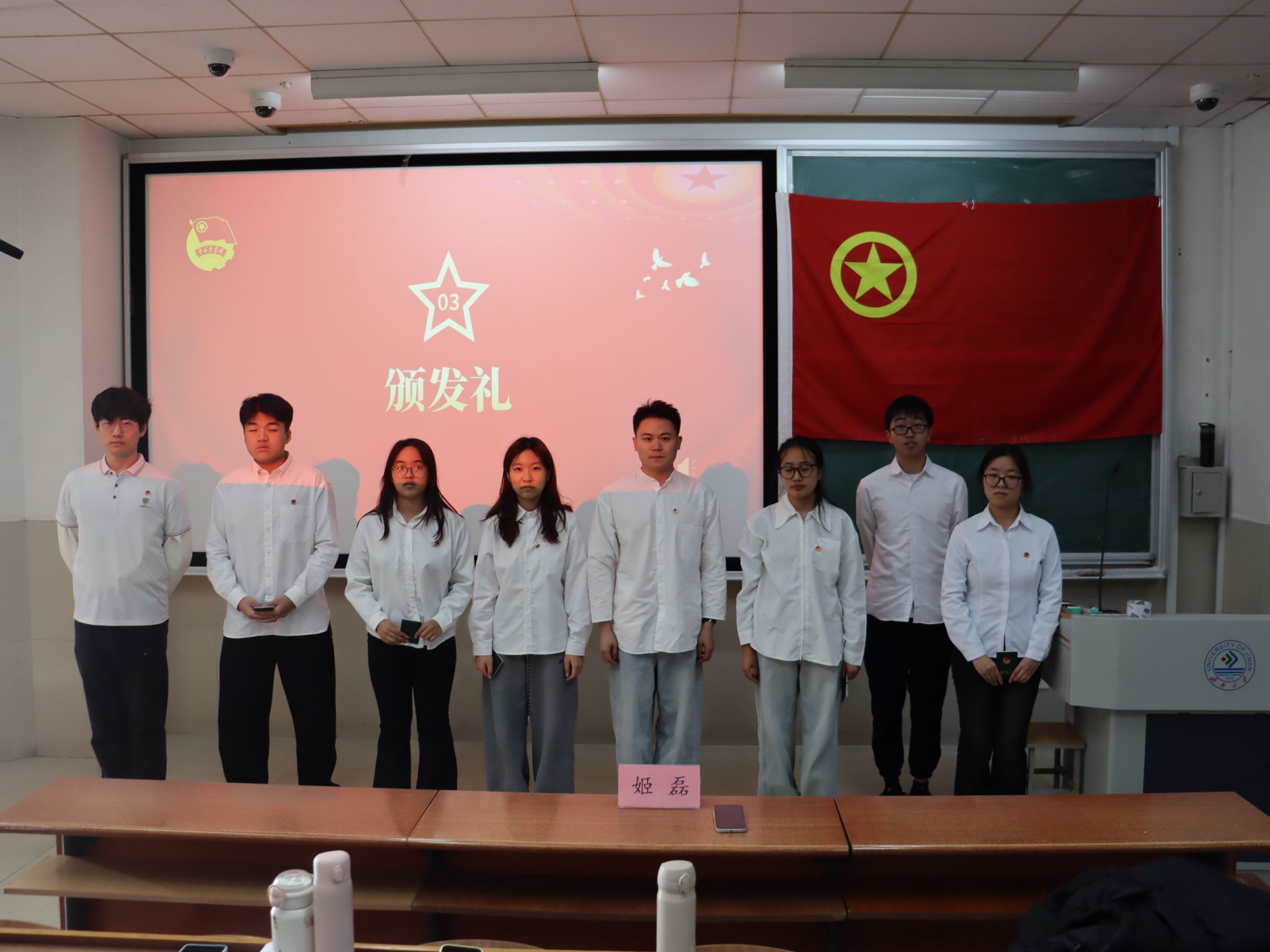 姬磊宣读了新团员名单,并为新团员佩戴团徽、颁发团员证。随后,在领誓人赵卓娅的带领下,新团员面向团旗庄严宣誓。