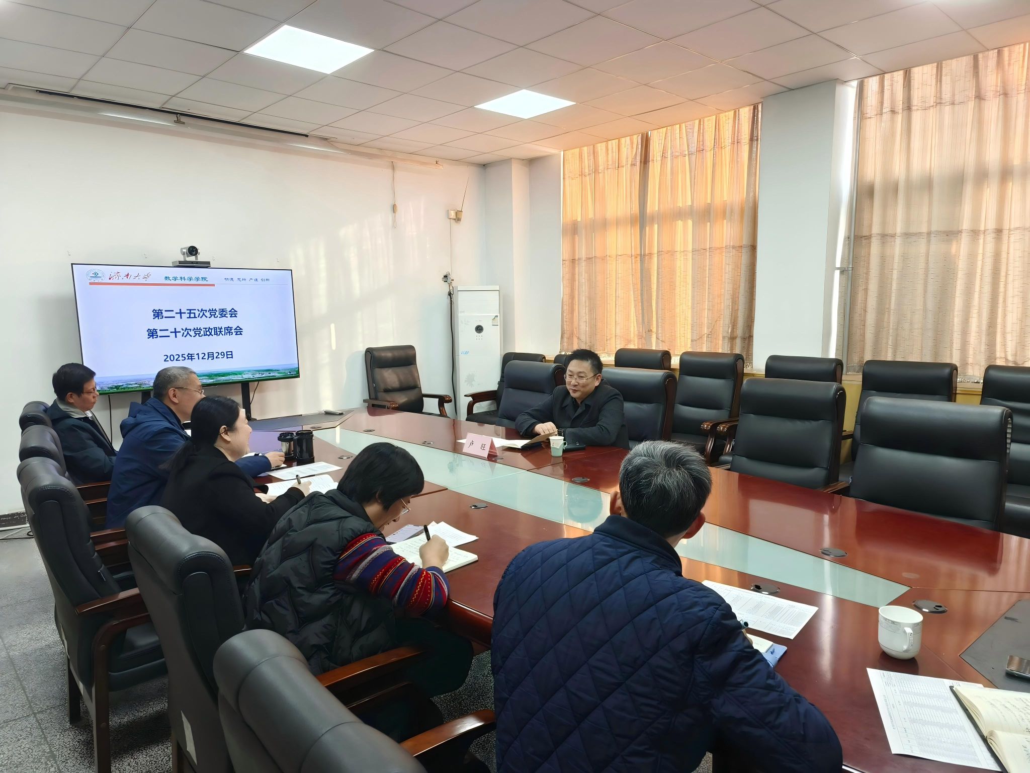 12月29日,济南大学数学科学学院召开党委会、党政联席会,学校党委常委、宣传部部长卢旺列席指导。