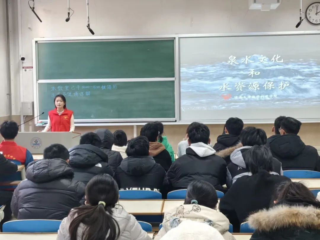 “水清则鱼跃,保护则源长。”为增进同学们对济南泉水文化的了解,让保护泉水的理念深入人心,济南大学数学科学学院学生会青年志愿者协会联合数学2404团支部于11月26日在第一教学楼106教室开展青社堂宣讲活动。
