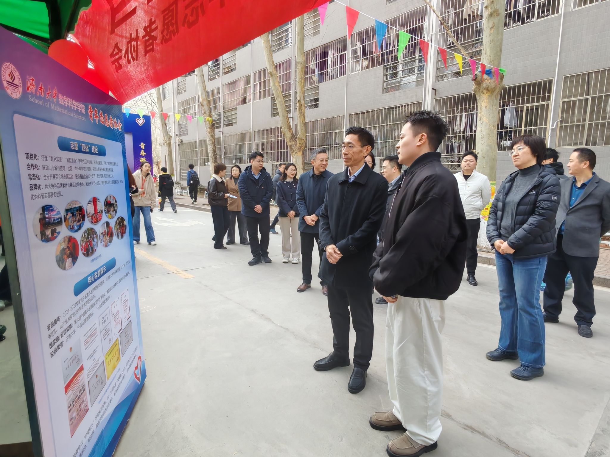 3月17日,济南大学2026年学雷锋志愿服务一条街暨项目交流展示活动在八食堂广场火热开展,数学科学学院青年志愿者协会积极组织志愿者参与本次活动,以专业特色与青春热情,展现学子的责任与担当。